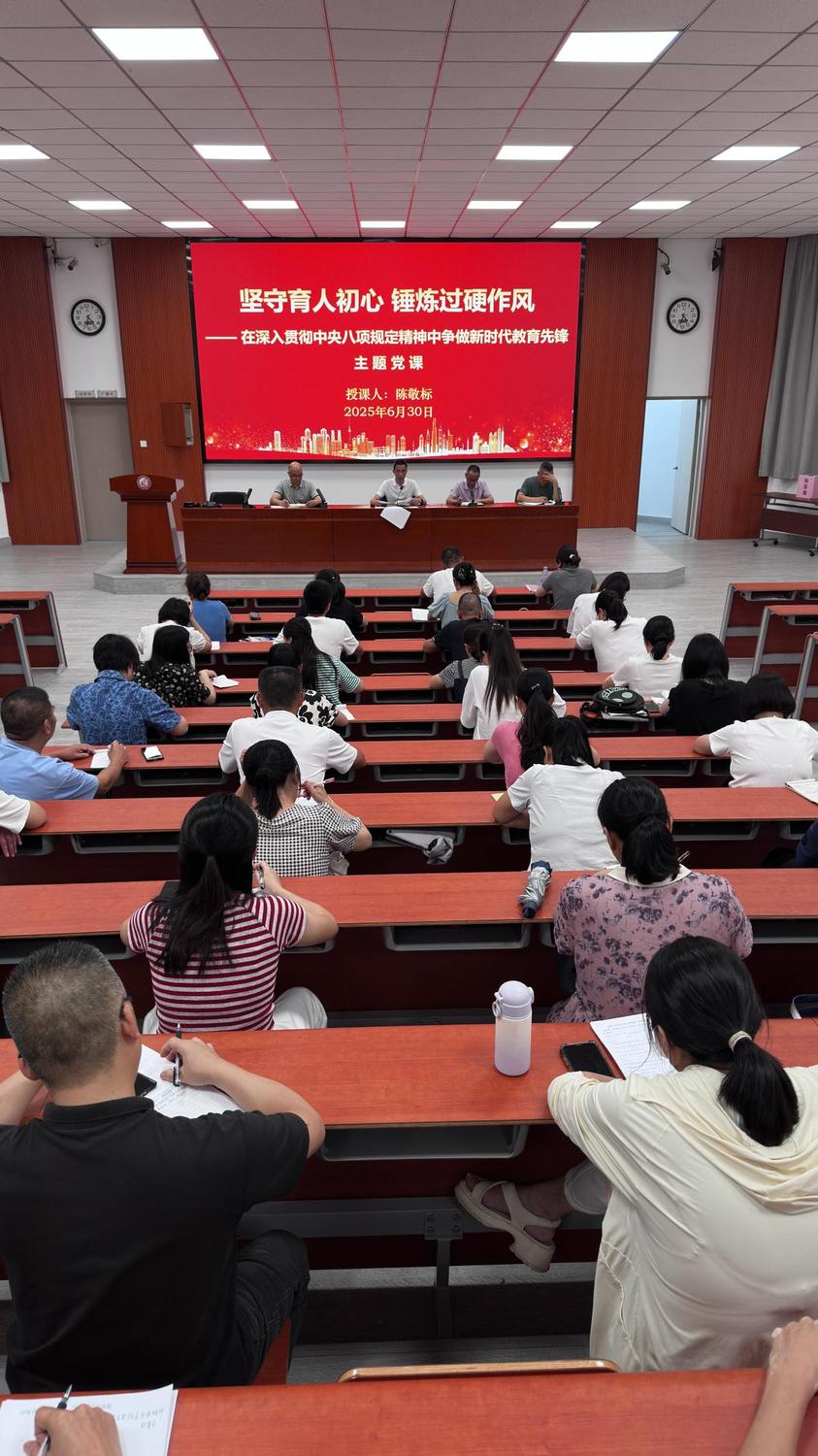 发表时间:2025-07-01 16:27 6月30日,我校党总支组织开展了庆祝中国共产党成立104周年暨“七一”主题党日系列活动。本次系列活动主题鲜明、内容丰富、形式多样,营造了浓厚的节日氛围,凝聚了强大的奋进力量。 一、深学细悟明方向:贯彻县委主要领导党课精神工作部署会