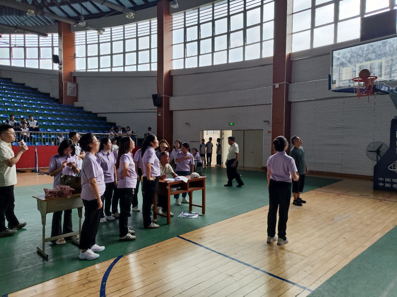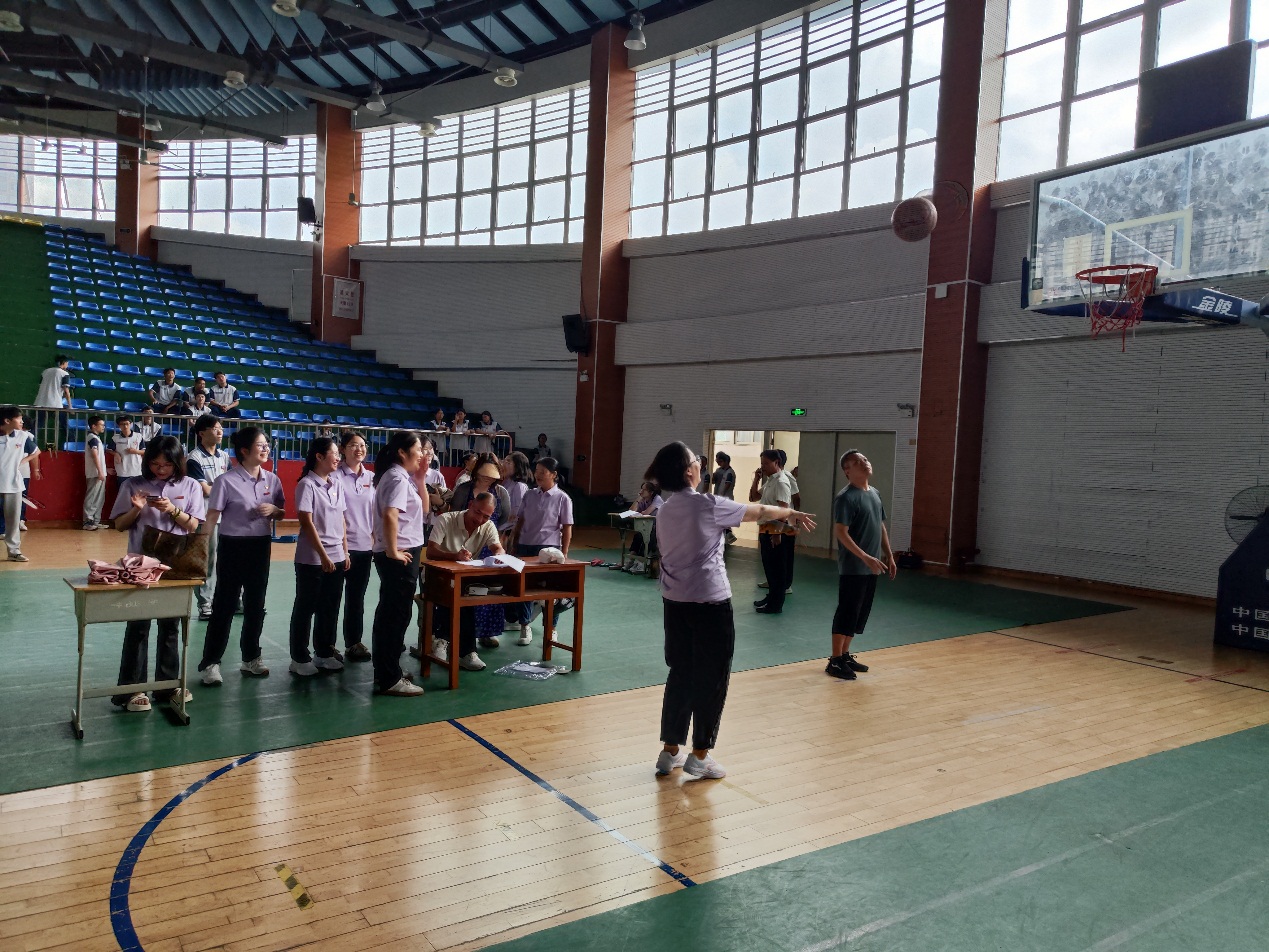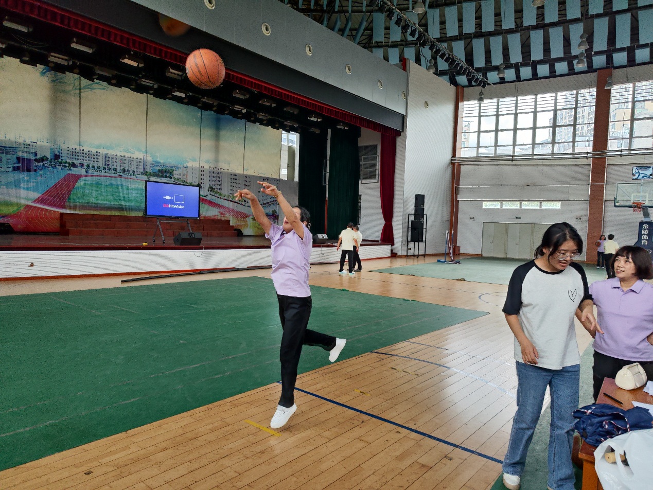 投篮比赛现场更是热闹非凡,男教工在罚球线前展现精准投射,女教工在3.2米投篮区尽显飒爽英姿,一个个篮球空心入网,将现场气氛推向高潮。