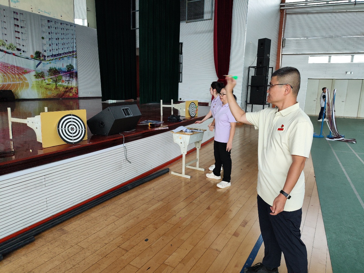掷飞镖区域,教师们屏气凝神,精准投掷,飞镖在空中划出一道道弧线,每一次命中靶心都引来阵阵欢呼。