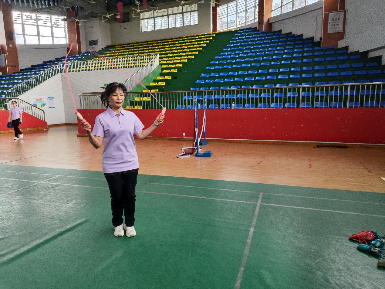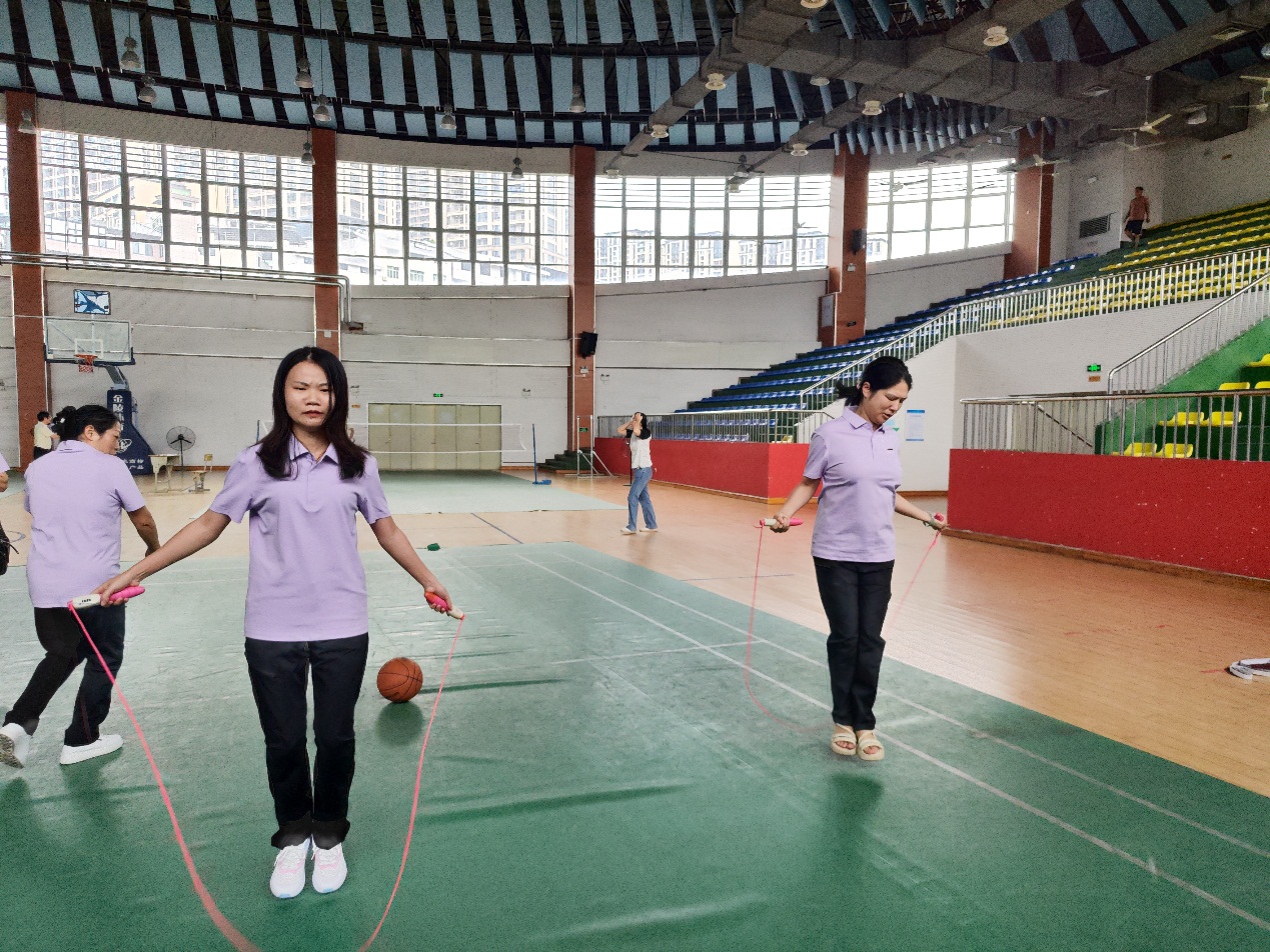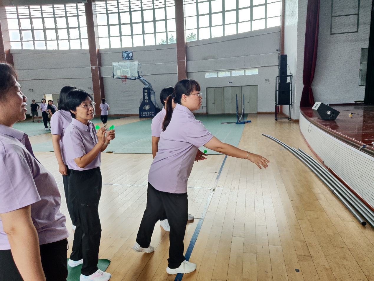 发表时间:2025-09-11 08:23 为庆祝第41个教师节,提振教师精气神,9月10日下午,校工会在体艺馆举办了教师节趣味体育竞赛活动,全校工会会员教师积极参与,在欢乐的赛事中度过了一个别样的节日。 本次活动设置了一分钟跳绳、掷飞镖和投篮比赛三个趣味项目,且分设男、女组别,每项均设一、二、三等奖若干名,吸引了众多教师现场报名参与,大家热情高涨,踊跃投身各个项目的角逐。 在一分钟跳绳赛场,参赛教师们身轻如燕,一个个灵动的身影在计数声中展现着活力与激情,每一次跳跃都彰显着教师们的蓬勃朝气。